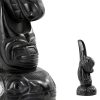 | Cette sculpture représente Corbeau qui se transforme en Épaulard, une œuvre de l’artiste haïda contemporain Ed Russ (1953-2006). Ces reproductions en résine de haute densité sont réalisées à partir de moulage de sculptures haïdas originales en argilite des collections du Musée canadien de l’histoire. L’argilite est une ardoise tendre que l’on ne trouve que sur Haida Gwaii. Les artistes haïdas sculptent dans ce matériau prisé par les commerçants depuis au moins le début du XIXe siècle. 17,5 cm. |