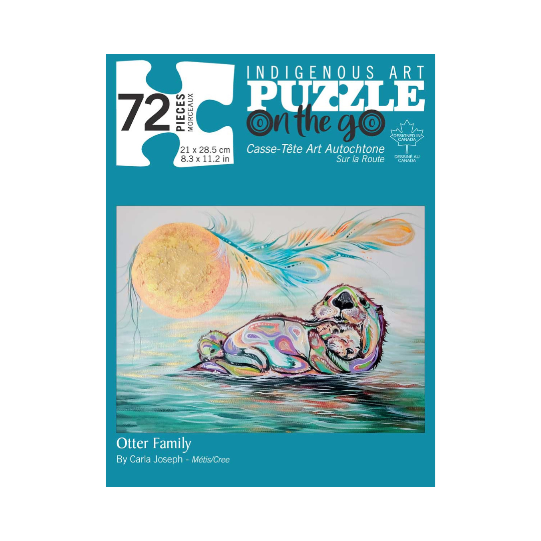 Ce puzzle de 72 pièces magnifiquement illustré par l’artiste Métisse/Cree canadienne Carla Joseph est une bonne façon de s’initier ou d’initier une personne que l’on aime au monde des casse-têtes et à l’art autochtone du Canada. Non seulement mettra-t-il votre esprit au défi, mais ses couleurs vibrantes ne manqueront pas d’éveiller vos sens visuels. Appréciez cette œuvre d’art unique tout en faisant appel à votre intellect. Quelle belle façon de passer un week-end au coin du feu ou d’offrir un cadeau à quelqu’un de spécial !