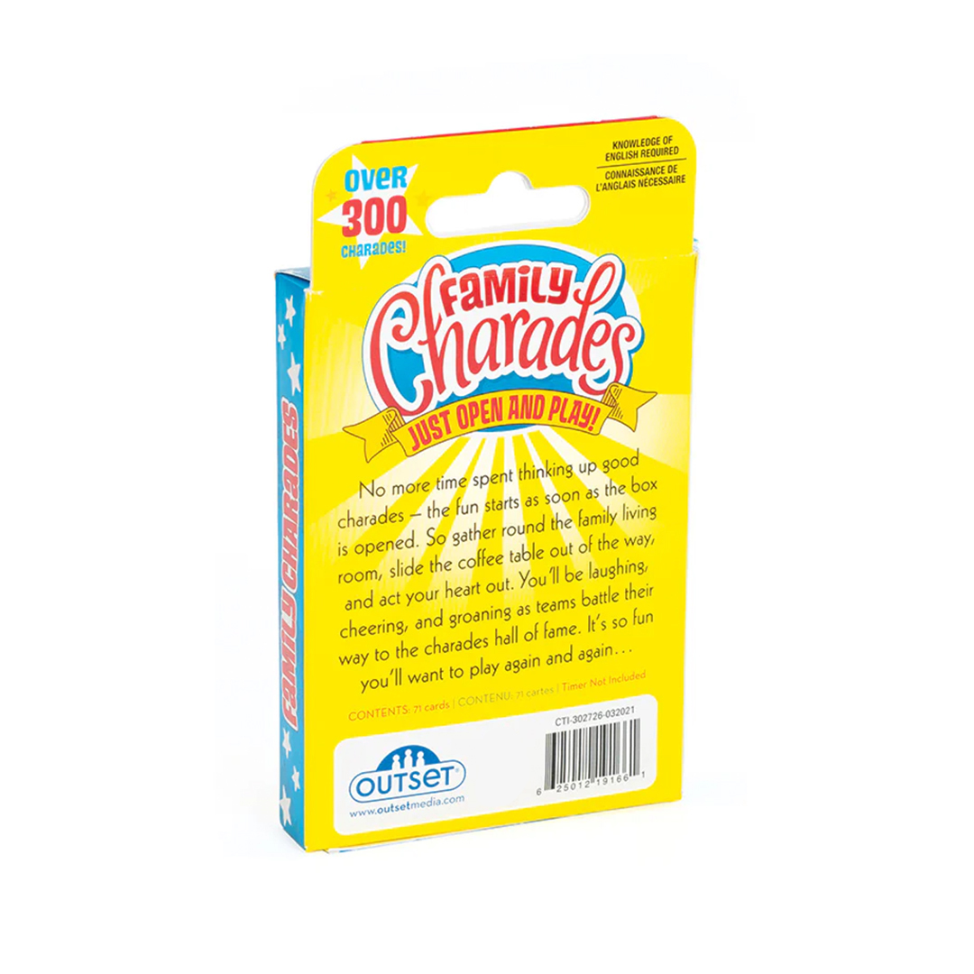 Réunissez la famille et préparez-vous à passer un bon moment à jouer aux charades en famille ! Ce jeu de cartes portable vous permet d’emporter partout avec vous l’expérience classique des charades. Avec plus de 300 charades de difficulté variable, il y en a pour tous les goûts. Alors, installez-vous confortablement et préparez-vous à jouer les scénarios les plus loufoques. Que la fête commence !