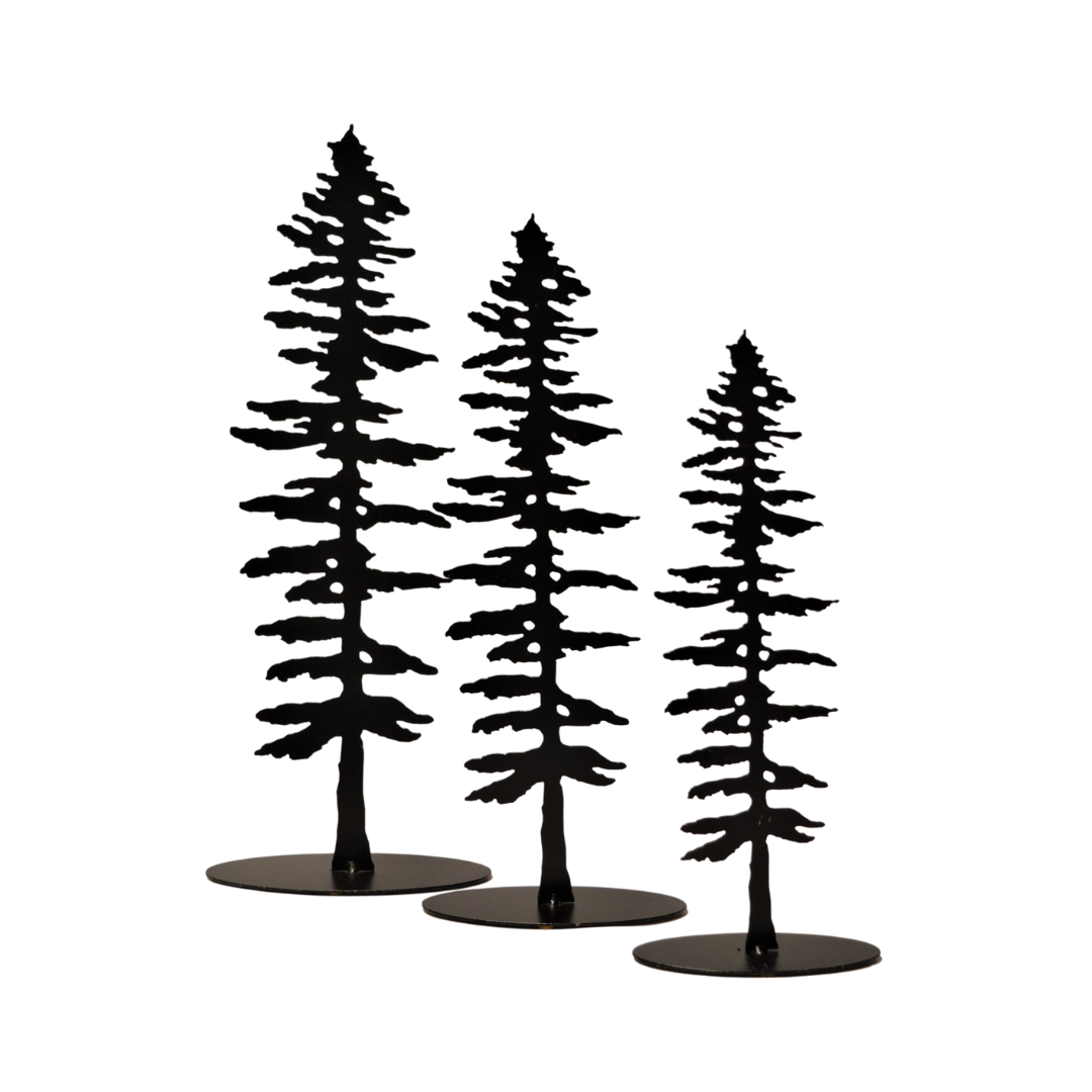 Silhouette d’épinette peinte découpée dans le métal.