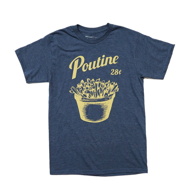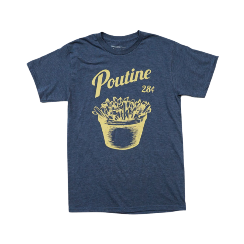 Allez-y et célébrez ce plat mythique avec un t-shirt présentant une publicité rétro de la poutine avec un prix digne d’une visite dans notre passé!
