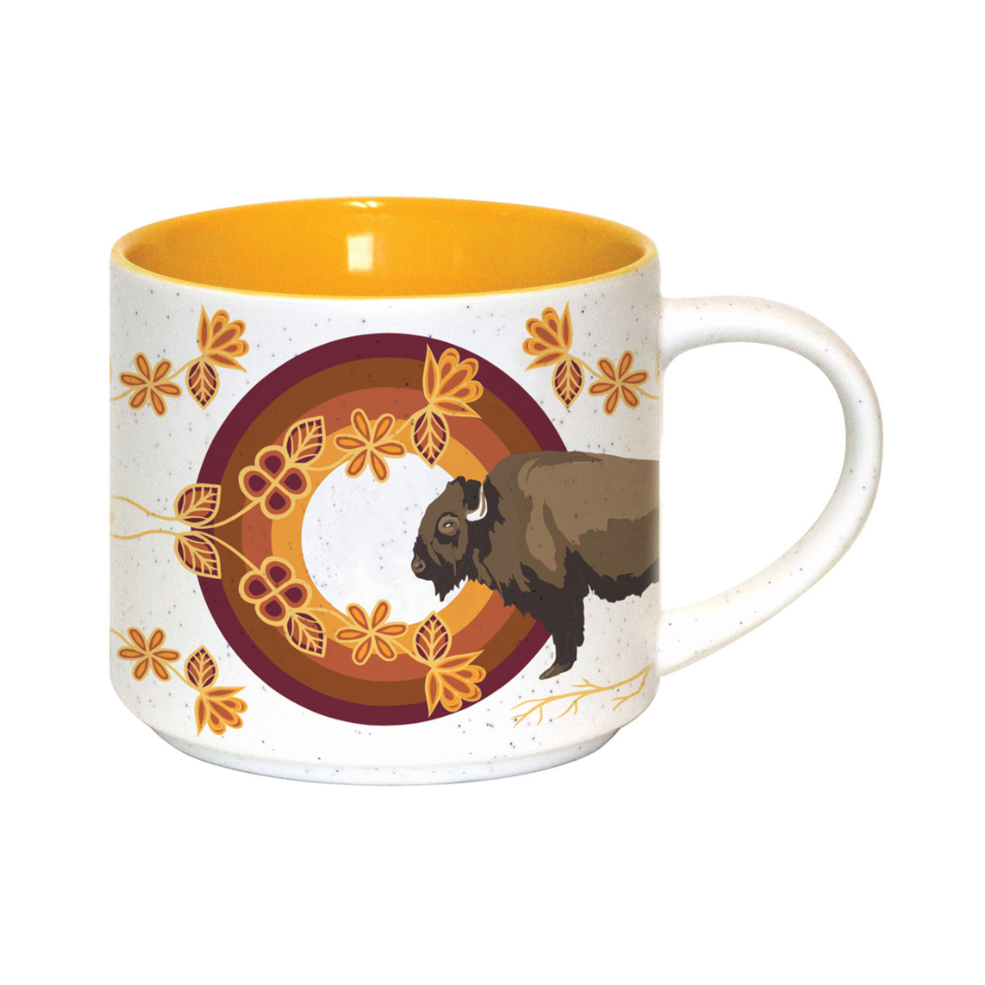 Commencez votre journée en vous inspirant et embellissez vos après-midi avec cette charmante tasse en céramique de 473 ml (16 oz), ornées de l’oeuvre Buffalo, conçu par l’artiste autochtone Storm Angeconeb. L’extérieur mat moucheté et l’intérieur brillant créent un contraste visuel captivant. Disponibles en plusieurs motifs, ces tasses se complètent parfaitement, ainsi que nos charmantes tasses à espresso en céramique de 3 oz. Idéale pour offrir en cadeau, chaque tasse est livrée dans une boîte colorée.