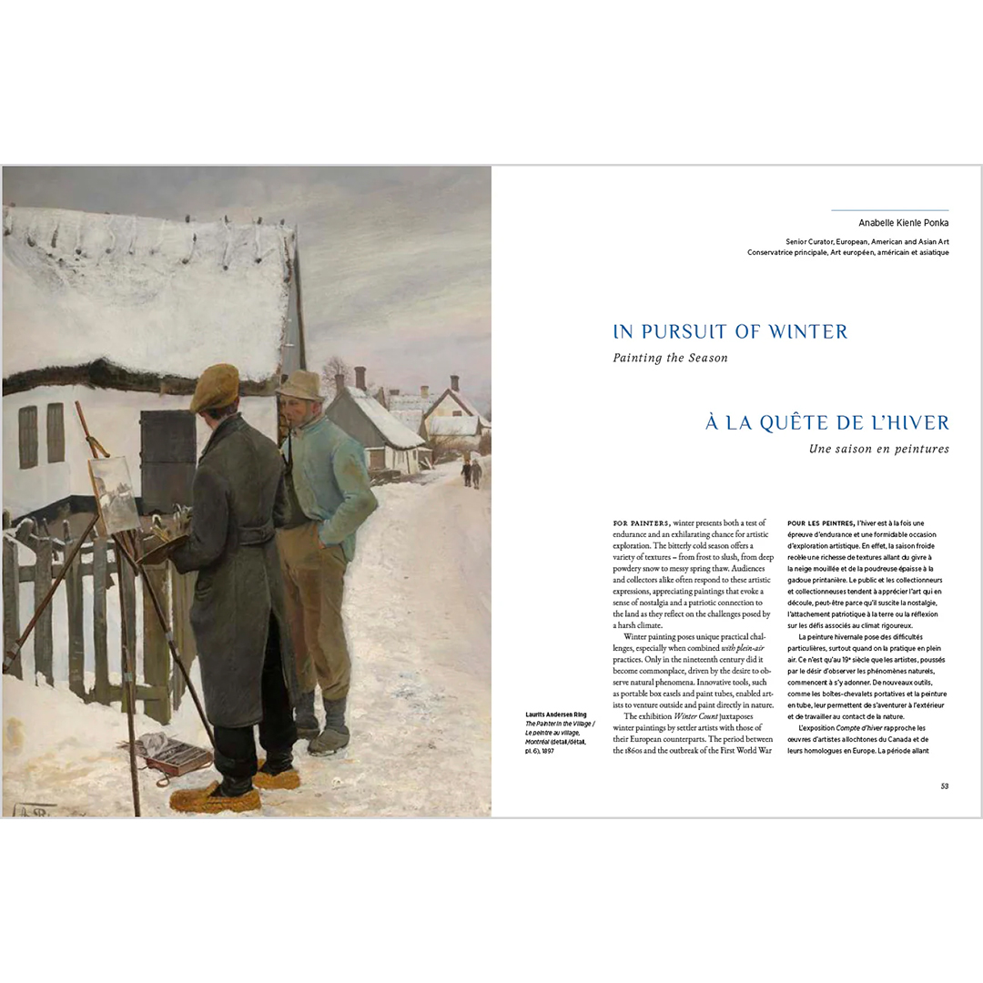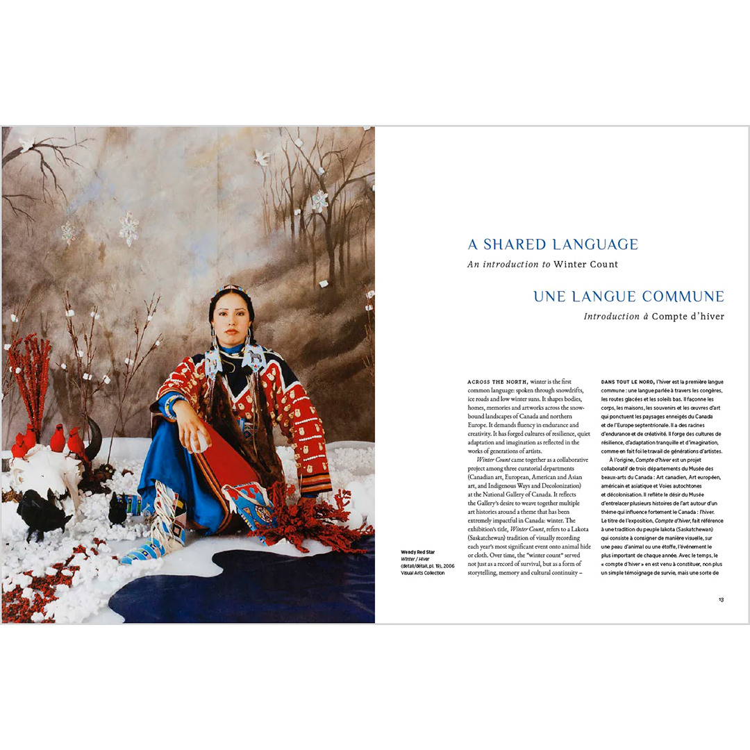 Présentant une sélection d’œuvres allant du début du XIXe siècle à nos jours – incluant des artistes tels que Kenojuak Ashevak, J.E.H. MacDonald, Claude Monet, Kent Monkman, Megan Musseau et Jin-me Yoon – « Winter Count » comprend environ 170 planches, ainsi que des essais illustrés rédigés par des conservateurs du Musée des beaux-arts du Canada. Il en résulte un livre qui invite les lecteurs à porter un regard neuf sur l’hiver – non pas comme une saison à subir, mais comme une source d’invention, de connexion et de respect mutuel par-delà le temps et l’espace.