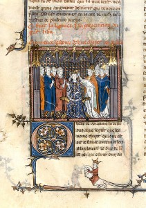 Hugues Capet, élu roi en 987, n’était qu’un des nombreux nobles puissants du royaume, et les territoires dont il assumait le contrôle direct n’étaient pas considérables. Ils étaient toutefois cruciaux du point de vue stratégique, englobant des villes aussi importantes que Paris et Orléans, et des terres particulièrement fertiles traversées de cours d’eau et de routes. Un autre élément distinguait Capet : il était le seul à avoir été oint d’huile sainte lors d’une cérémonie de couronnement, symbole des liens entre la royauté et l’Église. L’onction divine fut un événement pris très au sérieux par les Français qui attribuèrent aux rois capétiens subséquents de miraculeux pouvoirs de guérison. Ce sentiment de prestige spirituel associé à la monarchie serait plus tard abondamment exploité par les rois.