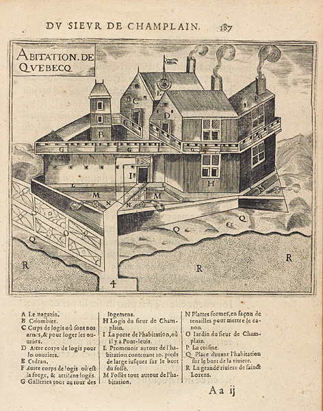 Dans la continuité du premier établissement de Jacques Cartier, en 1535-1536, dont Champlain retrouve les vestiges sur les rives de la rivière Saint-Charles, la première habitation est édifiée un peu plus à l’ouest, au pied du cap Diamant sur la rive du Saint-Laurent, où un débarcadère naturel facilite le mouillage des bateaux. Poste avancé, Québec doit aussi servir de comptoir de commerce avec les Autochtones, de base d’explorations à la recherche de ressources minières et de voies fluviales ou terrestres donnant accès à la « mer de l’Ouest » et à la Chine.