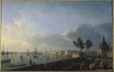Le tableau de Vernet fait ressortir l’activité qui régnait en 1758 à Bordeaux, alors que l’on s’affairait à charger et décharger les navires. Datant du début du XVIIIe siècle, les vastes édifices qui flanquent la zone portuaire montrent à quel point cette ville provinciale et l’arrière-pays s‘enrichissaient grâce au commerce, du sucre en particulier. Le sucre brut était importé des Antilles, raffiné à Bordeaux, puis expédié à divers marchés européens. Pour chaque produit faisant l’objet d’un commerce urbain, il y avait un contingent d’artisans dans les villages qui vivaient de la production de biens ou de denrées connexes et de leur transport depuis la ville de Bordeaux ou vers cette dernière. Par exemple, des potiers de Sadirac, situé à moins de dix kilomètres de la Garonne, fabriquaient des moules coniques utilisés dans le raffinage du sucre.